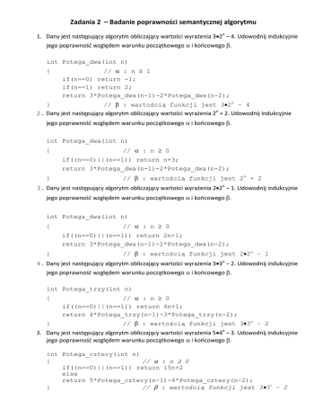 1. Dany jest następujący algorytm obliczający wartości wyrażenia 32n – 4. Udowodnij indukcyjnie
