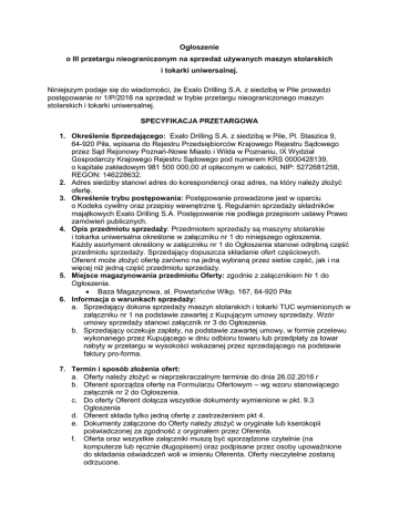 1. Określenie Sprzedającego: Exalo Drilling S.A. z siedzibą w Pile, Pl. Staszica 9,