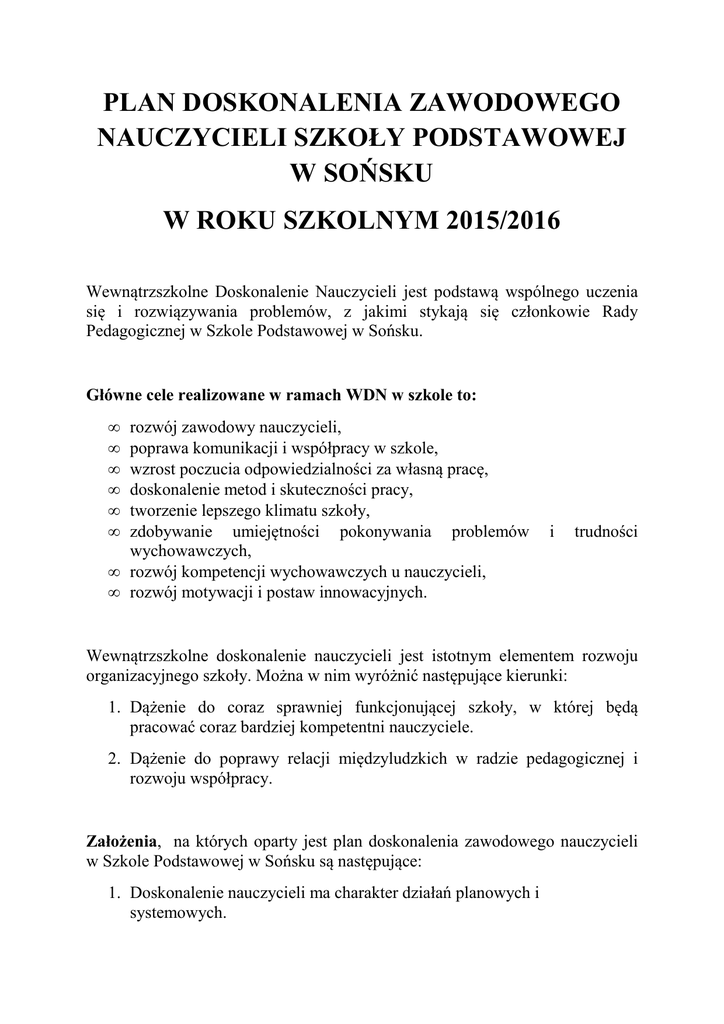 plan doskonalenia zawodowego nauczycieli szkoły podstawowej w