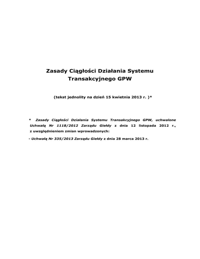 Zasady Ciągłości Działania Systemu Transakcyjnego GPW
