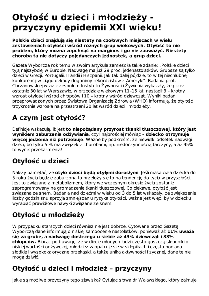 Otyłość u dzieci i młodzieży - przyczyny epidemii XXI wieku!