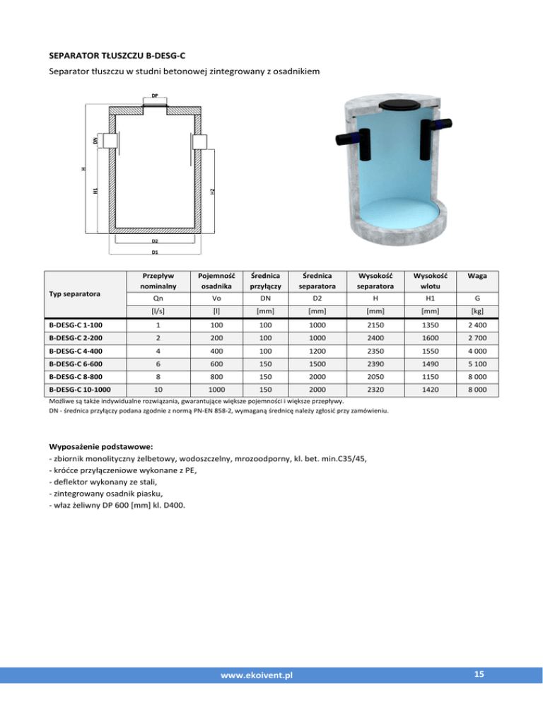 www.ekoivent.pl 15 SEPARATOR TŁUSZCZU B-DESG