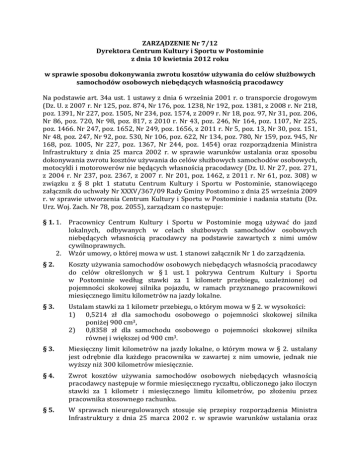 Zarządzenie Nr 7-12 - ryczałt samochodowy