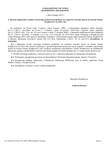 Zarządzenie Burmistrza Krapkowic nr 74/2015 z dnia 4.02.2015 r.