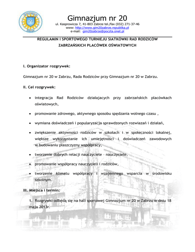 regulamin turnieju - Gimnazjum nr 20 w Zabrzu