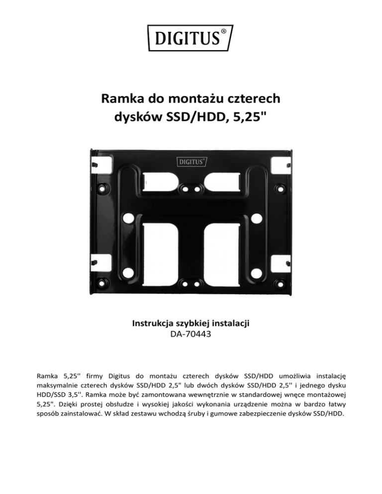 Ramka do montażu czterech dysków SSD/HDD, 5,25" Instrukcja