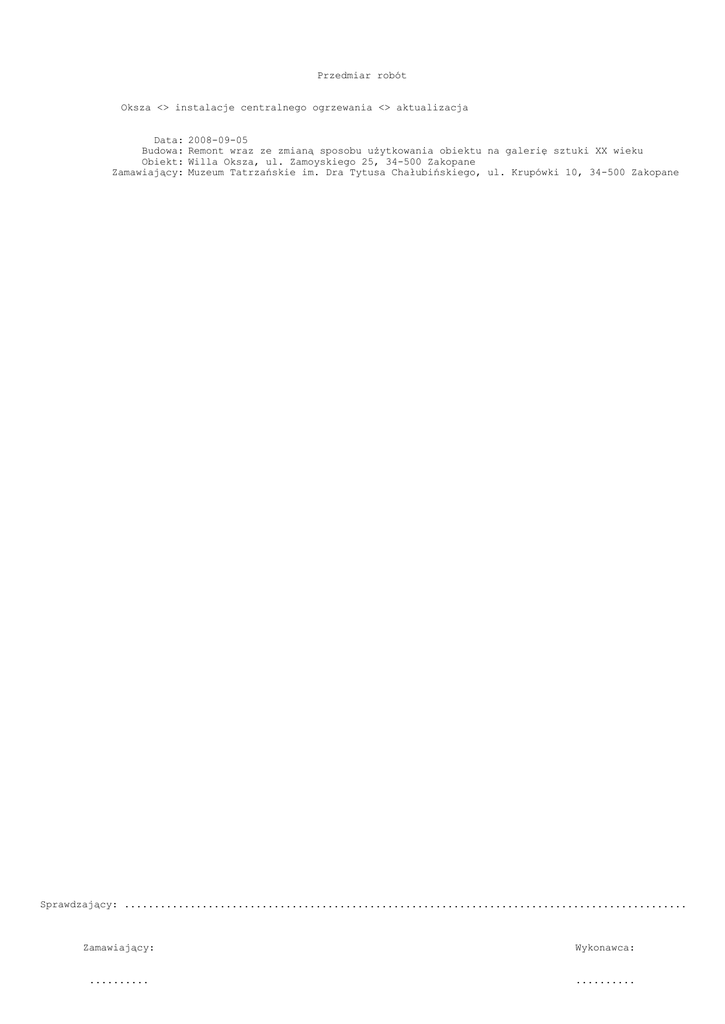 Wydruk kosztorysu - Muzeum Tatrzańskie