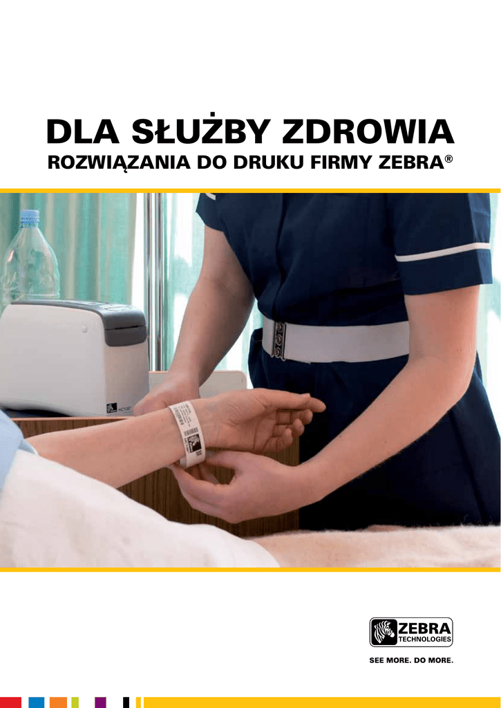 dla służby zdrowia Rozwiązania do druku firmy Zebra® Droga pacjenta Sprawdzone drukarki i nośniki firmy Zebra stosowane są w celu poprawy bezpieczeństwa, wygody i efektywności pracy na każdym etapie leczenia szpitalnego. Kody kreskowe, a ostatnio także identyfikatory radiowe (RFID), przyczyniają się do ograniczania błędów w identyfikacji i usprawniania pracy w szpitalach, od izby przyjęć przez oddziały, aptekę, aż po moment wypisu. Identyfikacja pacjentów za pomocą opasek na rękę drukowanych na drukarkach firmy Zebra stanowi ważny pierwszy krok w wielu inicjatywach mających na celu zwiększenie bezpieczeństwa pacjentów. Zastosowanie oprócz tekstu kodu kreskowego lub identyfikatora RFID stanowi dodatkowe i niezwykle istotne zabezpieczenie przed błędną identyfikacją pacjenta. Oznaczanie kart pacjentów wydrukowaną etykietą z kodem kreskowym to bardziej niezawodny sposób zapewnienia bezbłędnej identyfikacji karty każdego pacjenta w systemie szpitala. Próbki laboratoryjne muszą być dokładnie oznaczane. Drukarki Zebra zapewniają wygodny sposób drukowania etykiet przy łóżku pacjenta, na stanowiskach pielęgniarek albo w laboratorium. Podawanie leków może być czasochłonne i obarczone ryzykiem pomyłki. Używając drukarki przenośnej, farmaceuta może oznaczyć etykietą leki przeznaczone dla danego pacjenta już na oddziale, dzięki czemu oszczędza czas poświęcany na chodzenie do apteki. Pracownicy apteki szpitalnej mogą też drukować etykiety z kodami kreskowymi na przepisane dawki leku, aby zapewnić pełną kontrolę rozchodu leków. Bank krwi Transfuzje krwi niosą wiele zagrożeń, a nieprawidłowa identyfikacja to błąd, który może być śmiertelny w skutkach. Torebki z krwią są rutynowo oznaczane kodem kreskowym określającym grupę krwi. Dodanie etykiety z danymi pacjenta, dla którego przeznaczona jest krew, umożliwia przeprowadzenie dodatkowej automatycznej kontroli przed podaniem krwi. Typowe zastosowania w służbie zdrowia: • Etykiety na torebki z krwią • Zarządzanie środkami trwałymi w służbie zdrowia, np. inwentaryzacja sprzętu, konserwacja profilaktyczna • Próbki laboratoryjne • Kartoteki medyczne • Identyfikacja pacjentów • Etykiety apteczne • Zdjęcia radiologiczne • Identyfikacja personelu • Sterylizacja narzędzi • Zarządzanie materiałami w łańcuchu dostaw • Etykiety identyfikacyjne na sprzęt fizjoterapeutyczny • Wyniki USG/EKG Opieka pielęgniarska/ lekarska na oddziale Kartoteki medyczne Laboratorium Radiologia Dostawy Apteka Izba przyjęć Fizjoterapia Ograniczanie błędów w leczeniu pacjentów Właściwa identyfikacja pacjentów W 12-miesięcznym okresie od lutego 2006 do stycznia 2007 brytyjska Agencja ds. Bezpieczeństwa Pacjentów (NPSA) otrzymała 24.382 zgłoszenia o pacjentach, którzy z powodu błędnej identyfikacji byli niewłaściwie leczeni. Szacuje się, że ponad 2900 z tych przypadków wiąże się z opaskami identyfikacyjnymi na rękę i ich zastosowaniem (źródło: NPSA, Safer Practice Notice nr 27, lipiec 2007). Drukarki stacjonarne i nośniki do druku opasek na rękę marki Zebra zapewniają efektywne rozwiązanie umożliwiające poprawę bezpieczeństwa pacjentów. Oferowane są opaski w rozmiarach dla dorosłych, dzieci i noworodków oraz w kolorze czerwonym do oznaczania alergii. Na zamówienie dostępnych jest pięć dodatkowych kolorów. Nadruki na opaskach mogą zawierać tekst, kody kreskowe, a nawet obrazy cyfrowe, dzięki czemu wszystkie potrzebne dane włącznie z grupą krwi, alergiami i lekarzem prowadzącym są natychmiast widoczne. W przypadku pacjentów przewlekle chorych, którzy przychodzą do szpitala na leczenie regularnie, szpitale mogą wydać pacjentom karty identyfikacyjne służące do identyfikacji ich w czasie procedury przyjęć i podczas leczenia. “Po udanej próbie opasek na rękę Zebra zrealizowanej przez Urząd Ochrony Zdrowia we Florencji, badania przeprowadzone równolegle z próbą wykazały, że wykorzystanie opasek zapobiegło 220 przypadkom błędnej identyfikacji pacjentów” Ordynator oddziału chirurgii urazowej i główny specjalista ds. zagrożeń w służbie zdrowia Urząd Ochrony Zdrowia we Florencji, Włochy Pobieranie próbek: Drukuj etykiety na próbki na przenośnej drukarce w miejscu pobrania, aby zapewnić prawidłowe oznaczenie próbki. Transfuzje krwi: Zautomatyzuj weryfikację tożsamości, aby ograniczyć zagrożenia. Wykorzystaj opaski na rękę i bezbłędne etykiety z kodami kreskowymi w celu śledzenia jednostek krwi i próbek. Podawanie leków przy łóżku pacjenta: Zapewnij podawanie właściwego leku właściwym pacjentom. Wykorzystaj etykiety z kodami kreskowymi do identyfikacji leków. Gdzie występują błędy dotyczące leków? Monitorowanie 1,9% Przepisywanie i zamówienia 15,3% Podawanie 33,3% Wydawanie 18,2% Wprowadzanie i weryfikacja danych 31,3% Najczęstsze przyczyny błędów dotyczących leków, 2002. W oparciu o artykuł w Hospitals and Health Networks z kwietnia 2004. “Próba pilotażowa zastosowania opasek na rękę z identyfikatorem RFID przeprowadzona na oddziale dziennym chirurgii w szpitalu Birmingham Heartlands umożliwiła szpitalowi zwiększenie liczby operacji wykonywanych dziennie o jeden zabieg. Generuje to dodatkowy nieplanowany dochód między 70.000 GBP a 270.000 GBP rocznie (w zależności od rodzaju zabiegu)” Szpital Heartlands Fundusz zdrowia Heart of England NHS Trust, Wielka Brytania Oszczędność czasu i kosztów w administracji szpitala Kody kreskowe i drukowane etykiety: redukują czas poświęcany na czynności administracyjne, zwiększając przy tym bezpieczeństwo Wprowadzenie do szpitala systemu identyfikacji pacjentów opartego na kodach kreskowych nie tylko zmniejsza liczbę błędów i związane z nimi koszty (w tym potencjalne koszty sądowe), ale przynosi także wiele innych korzyści. Po przejściu na zautomatyzowany system wprowadzan