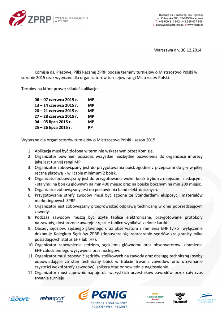 Warszawa dn. 30.12.2014. Komisja ds. Plażowej Piłki Ręcznej