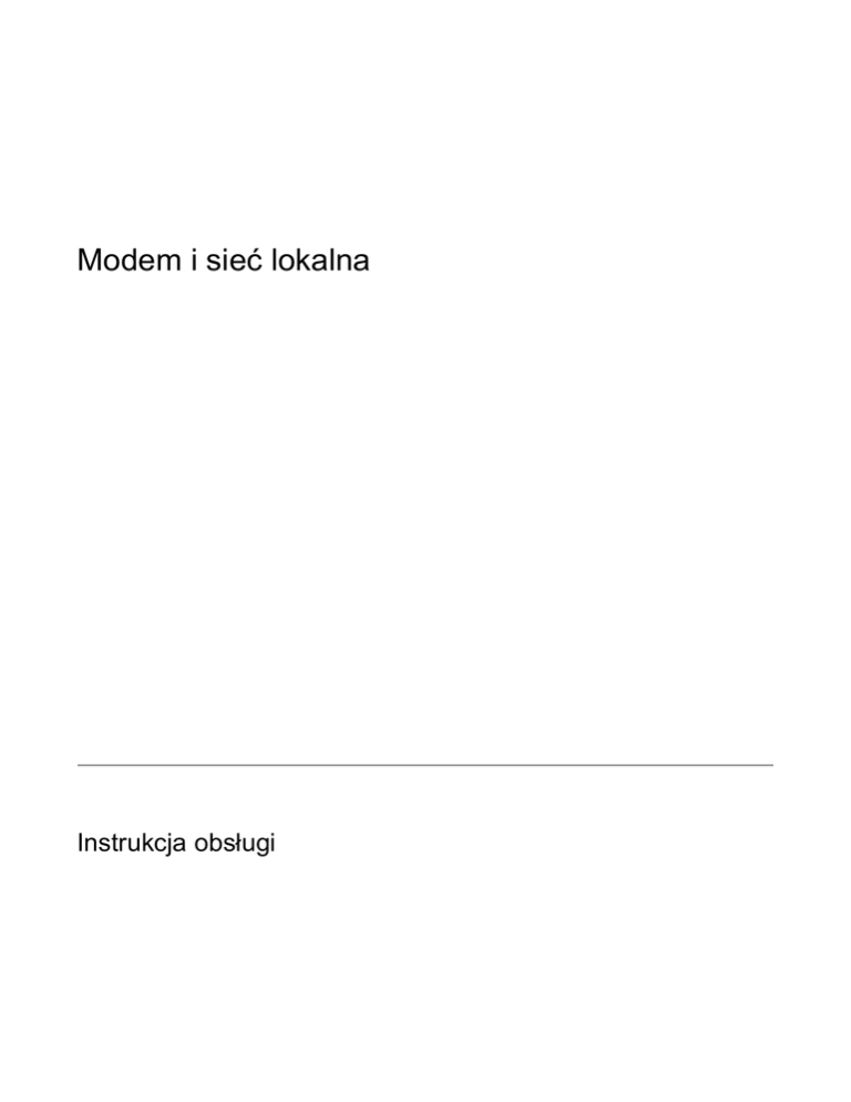 Modem i sieć lokalna Instrukcja obsługi © Copyright 2007 Hewlett-Packard Development Company, L.P. Informacje zawarte w niniejszym dokumencie mogą zostać zmienione bez powiadomienia. Jedyne warunki gwarancji na produkty i usługi firmy HP są ujęte w odpowiednich informacjach o gwarancji towarzyszących tym produktom i usługom. Żadne z podanych tu informacji nie powinny być uznawane za jakiekolwiek gwarancje dodatkowe. Firma HP nie ponosi odpowiedzialności za błędy techniczne lub wydawnicze ani pominięcia, jakie mogą wystąpić w tekście. Wydanie drugie: marzec 2007 Wydanie pierwsze: Styczeń 2007 Numer katalogowy dokumentu: 419704-242 Informacje o produkcie W niniejszej instrukcji obsługi opisano funkcje wspólne dla większości modeli. Niektóre funkcje mogą być niedostępne dla danego komputera. PLWW iii iv Informacje o produkcie PLWW Spis treści 1 Używanie modemu (tylko wybrane modele) Podłączanie kabla modemowego ......................................................................................................... 2 Podłączanie adaptera kabla modemowego odpowiedniego dla danego kraju ..................................... 3 Konfigurowanie ustawień lokalizacji ..................................................................................................... 4 Sprawdzanie bieżącej wybranej lokalizacji .......................................................................... 4 Dodawanie nowej lokalizacji podczas podróży .................................................................... 5 Rozwiązywanie problemów z połączeniem podczas podróży ............................................. 6 2 Połączenie z siecią lokalną Indeks ................................................................................................................................................................... 9 PLWW v vi PLWW 1 Używanie modemu (tylko wybrane modele) Modem musi zostać podłączony do analogowej linii telefonicznej przy użyciu kabla modemowego z 6stykowym złączem RJ-11. W niektórych krajach wymagane jest także zastosowanie adaptera kabla modemowego odpowiedniego dla danego kraju. Gniazda cyfrowych systemów PBX mogą przypominać wyglądem analogowe gniazda telefoniczne, nie są jednak zgodne z modemem. OSTRZEŻENIE! Podłączenie wewnętrznego modemu analogowego do linii cyfrowej może spowodować nieodwracalne uszkodzenie modemu. Jeżeli modem zostanie przypadkowo podłączony do linii cyfrowej, należy go natychmiast odłączyć. Jeżeli kabel modemowy jest wyposażony w układ zapobiegający zakłóceniom w odbiorze programów radiowych i telewizyjnych (1), należy skierować koniec z tym układem (2) w stronę komputera. PLWW 1 Podłączanie kabla modemowego OSTRZEŻENIE! Aby ograniczyć ryzyko porażenia prądem elektrycznym, pożaru lub uszkodzenia sprzętu, nie należy podłączać kabla modemowego ani telefonicznego do gniazda RJ-45 (sieciowego). Aby podłączyć kabel modemowy: 2 1. Podłącz kabel modemowy do gniazda modemowego w komputerze (1). 2. Podłącz kabel modemowy do ściennego gniazda telefonicznego RJ-11 (2). Rozdział 1 Używanie modemu (tylko wybrane modele) PLWW Podłączanie adaptera kabla modemowego odpowiedniego dla danego kraju Gniazda telefoniczne w poszczególnych krajach mogą się różnić. Aby używać modemu i kabla modemowego poza krajem, w którym został kupiony komputer, należy nabyć odpowiedni dla danego kraju adapter kabla modemowego. Aby podłączyć modem do analogowej linii telefonicznej, której typ gniazda jest inny niż RJ-11, wykonaj następujące kroki: PLWW 1. Podłącz kabel modemowy do gniazda modemowego w komputerze (1). 2. Podłącz kabel modemowy do adaptera kabla modemowego (2). 3. Podłącz odpowiedni dla danego kraju adapter kabla modemowego do ściennego gniazda telefonicznego (3). Podłączanie adaptera kabla modemowego odpowiedniego dla danego kraju 3 Konfigurowanie ustawień lokalizacji Sprawdzanie bieżącej wybranej lokalizacji Aby sprawdzić bieżące ustawienie lokalizacji dla modemu, wykonaj następujące kroki: 4 1. Wybierz kolejno Start > Panel sterowania. 2. Kliknij ikonę Zegar, język i region. 3. Kliknij ikonę Opcje regionalne i językowe. 4. Lokalizacja zostanie wyświetlona w obszarze Lokalizacja. Rozdział 1 Używanie modemu (tylko wybrane modele) PLWW Dodawanie nowej lokalizacji podczas podróży Domyślnie jedynym ustawieniem lokalizacji dostępnym dla modemu jest ustawienie dla kraju, w którym komputer został zakupiony. Podczas podróżowania po innych krajach należy ustawić lokalizację modemu wewnętrznego na spełniającą standardy działania kraju, w którym modem jest używany. Po dodaniu nowych ustawień lokalizacji są one zapisywane przez komputer, dzięki czemu w każdej chwili można przełączać się między nimi. Możliwe jest dodanie wielu ustawień lokalizacji dla każdego kraju. OSTROŻNIE: Aby uniknąć utraty pierwotnych ustawień, nie należy usuwać obecnych ustawień kraju modemu. Można dodać nową konfigurację dla każdej lokalizacji, w której modem będzie używany, zachowując jednocześnie pierwotną konfigurację. OSTROŻNIE: Aby zapobiec skonfigurowaniu modemu w sposób naruszający przepisy telekomunikacyjne danego kraju, należy wybrać kraj, w którym znajduje się komputer. Modem może nie działać poprawnie, jeżeli nie zostanie wybrany prawidłowy kraj. Aby dodać ustawienie lokalizacji dla modemu, wykonaj następujące kroki: 1. Wybierz kolejno Start > Panel sterowania > Sprzęt i dźwięk. 2. W okienku po lewej stronie kliknij opcję Opcje telefonu i modemu. 3. Następnie kliknij kartę Reguły wybierania numeru. 4. Kliknij przycisk Nowa. Zostanie wyświetlone okno Nowa lokalizacja. 5. W polu Nazwa lokalizacji wpisz nazwę dla nowego ustawienia lokalizacji (dom, praca itd.). 6. Wybierz kraj lub region na liście rozwijanej Kraj/region. Jeżeli zostanie wybrany kraj lub region, w którym modem nie jest obsługiwany, 