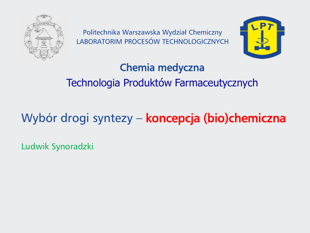 Wybór drogi syntezy - Laboratorium Procesów Technologicznych