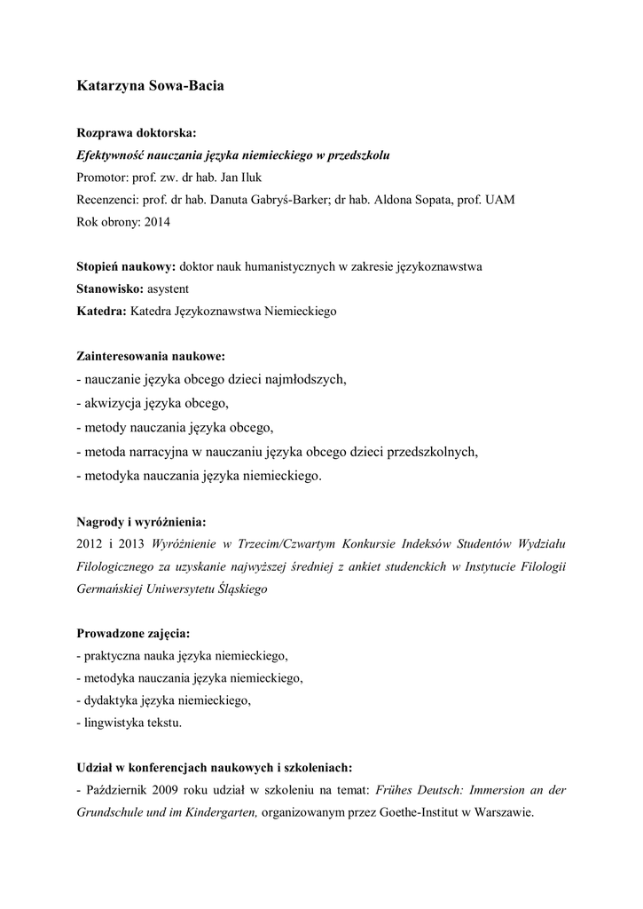 Katarzyna Sowa-Bacia - Kraków - Instytut Neofilologii