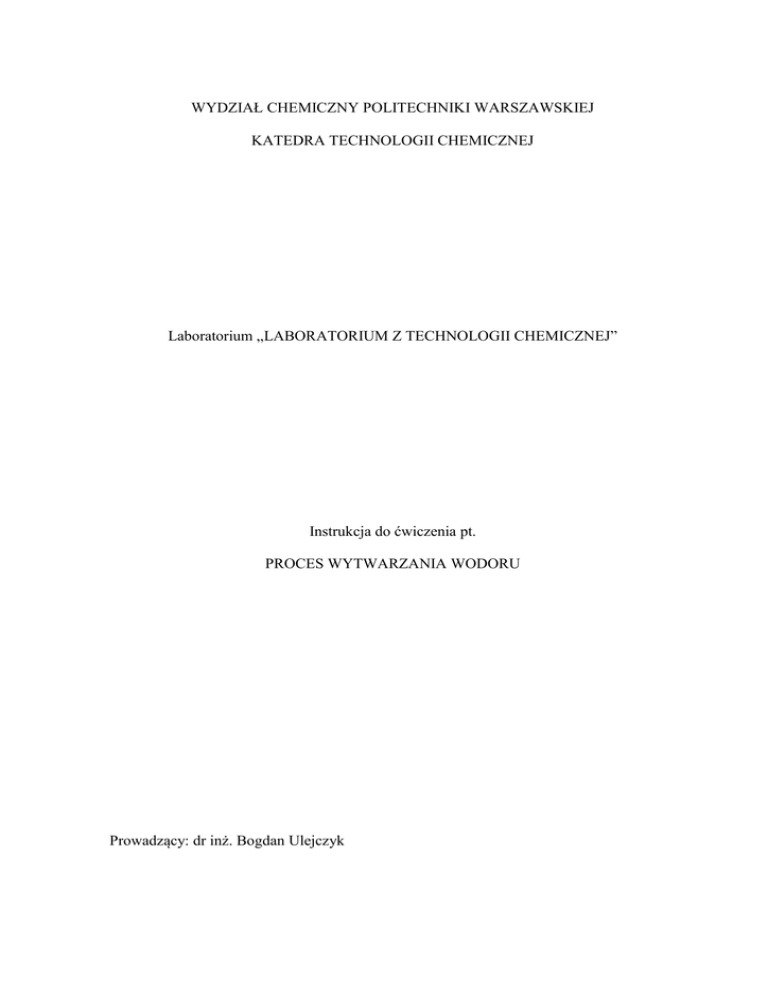 Proces wytwarzania wodoru - Katedra Technologii Chemicznej
