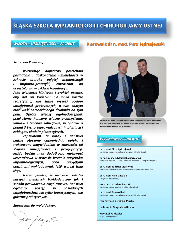 śląska szkoła implantologii i chirurgii jamy ustnej