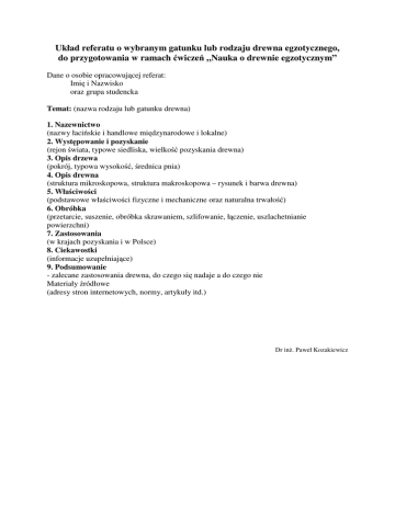 Układ referatu o wybranym gatunku lub rodzaju drewna