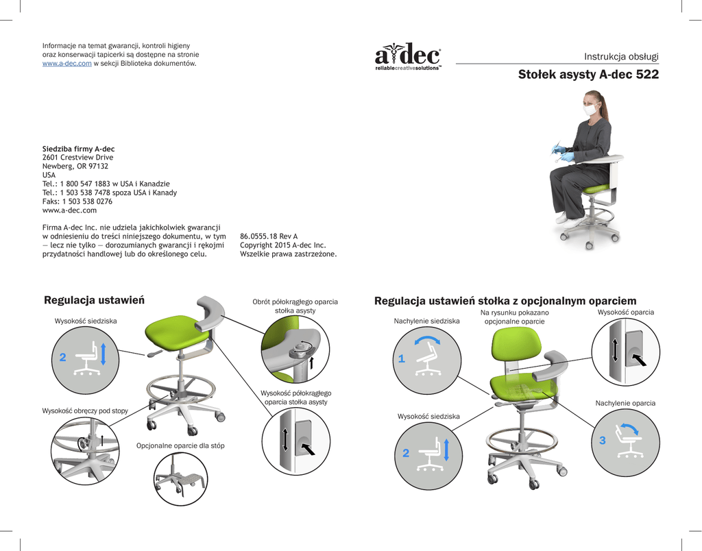 Stołek asysty A-dec 522 — instrukcja obsługi