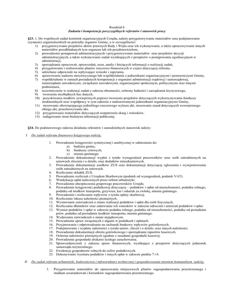 Rozdział 6 Zadania i kompetencje poszczególnych referatów i