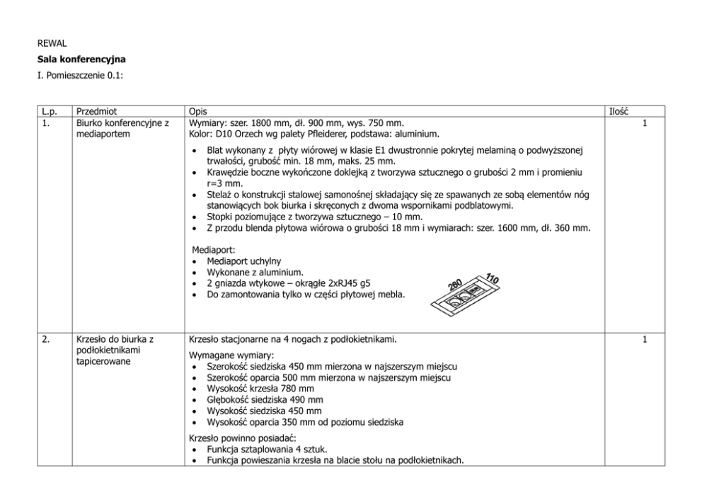 REWAL Sala konferencyjna I. Pomieszczenie 0.1: L.p. Przedmiot