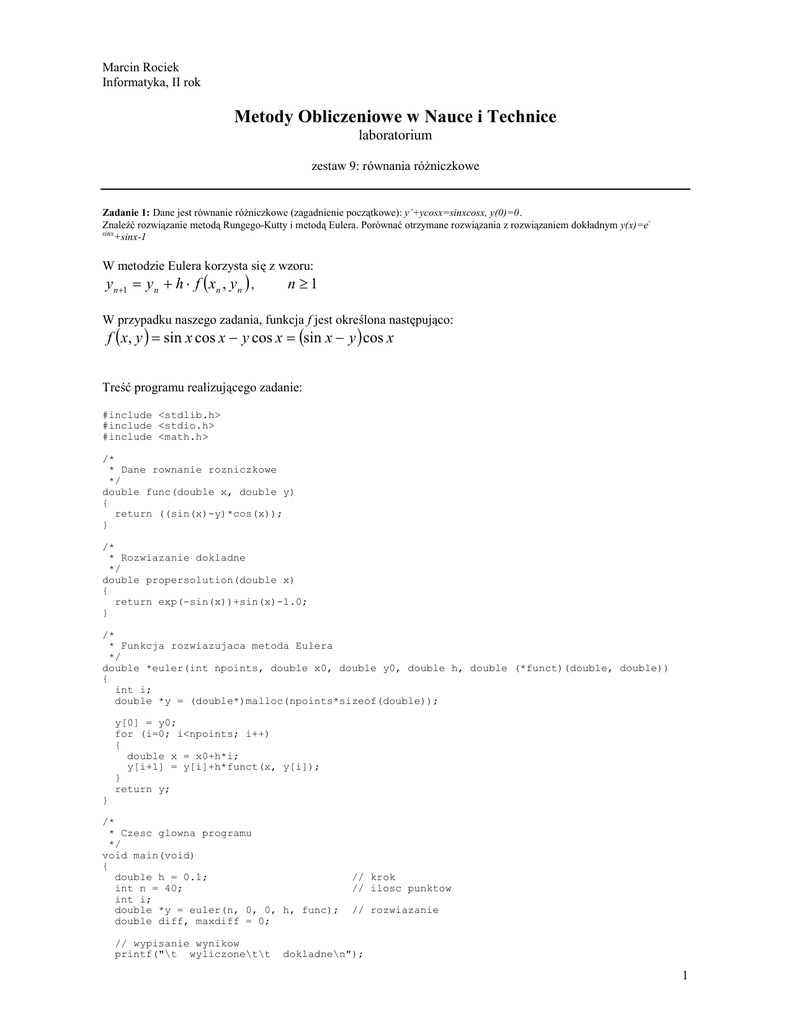 Znaleźć rozwiązanie metodąRungego-Kutty i metodąEulera. Poró wnać otrzymane rozwiązania z rozwiązaniem dokładnym y(x)=esinx