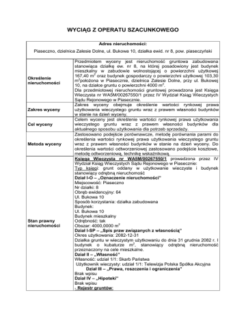 WYCIĄG Z OPERATU SZACUNKOWEGO, Piaseczno, ul