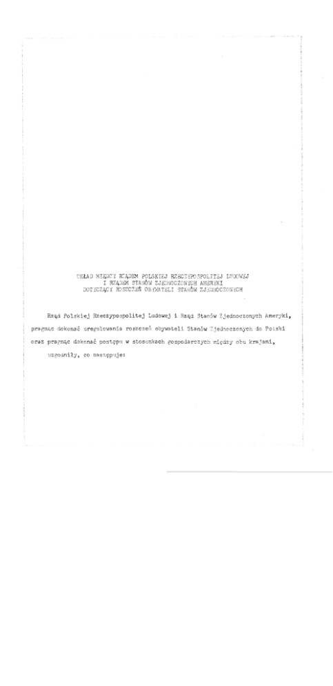 - 6 ZA~CZNIK A. Db celow rozdzialu przez Rz~ Stan6w Zjednoczonych sumy maj~cej bye Rz~d zapIaconCi: przez prawa i interesy zwi~zane i tego ns wlasnosc lub inaczej zacji, przej~eia s~ Polski, "roszczeniami obywateli Stanow Zjednoczonych" odnosz~ce si~ przej~tego na wlasno§e lub innego do mienia znacjonalizowanego, przez Polsk~, przej~cia, przej~ ktore od daty nacjonali- I al ! ! do dnia wejscia w zycie niniejszego ukladu, byly nieprzerwanie, z zastrzezeniem postanowien w paragrafach B i C niniejszego it I I zal~ezniks: I bezposrednio wla snosci~ osob fizycznych b~dqcych ob:y-watelami I I Stan6w Zjednoczonyeh; j ! Ibl j bezposrednio wlasno§eiq osob prawnyeh utworzonych na podstawie prawa Stanow Zjednoczonych, jednego z wchodzqcych w sklad stan6w I lub ich innej jednostki politycznej, kt6ryeh pi~edzlesiqt lub ~ II wi~cej snosci~ kapitalu akeyjnego lub udzialow majqtkowych bylo wIa- I lub ich innej jednostki politycznej, ktorych 1 lub ! wi~cej snosci~ wchodz~cych w sklad stanow pi~6dziesiqt procent kapitalu akcyjnego lub udzialow majqtkowych bylo wIa osob fizycznych b~d~cych obywatelami Stan6w Zjednoczonych, bezposrednio lub posrednio poprzez udzialy w jednej lub kilku oso bach prawnych jakiejkolwiek narodowosci; Idl posrednio wlasnosci q osob fizycznych I I lei bezposrednio wlasnosci q osob prawnyeh utworzonych na podstawie prawa Stan6w Zjednoczonych, jednego z ! ! obywateli Stan6w Zjednoczonych; I I ! procent 1 ) I I b~dqcych obywatelami 5tanow Zjednoczonych lub osob prawnyeh utworzonych na podstawie prawa Stanow Zjednoczonych, jednego z wchodzqcych w sklad stanow lub ich innej jednostki politycznej, poprzez udzialy w osobach pra~ I - 7 nych utworzonych na podstawie prawa Stanow Zjednoczonych, jednego z wchodz~cych w sklad stanow lub ich innej jednostki politycznej, ktore nie zostaly obj~te wyzej kategori~ Ibl lub I ej; /e/ posrednio wlasnosei~ osob obj~tych wyzej kategori~ /a/, Ib/ lub le/, poprzez wlasnosc kapitalu akcyjnego lub bezposrednich udzia low majCltkowych w osobach prawnyeh utworzonyeh na podstawie prawa polskiego, ktoryeh jakakolwiek Polsk~, przej~ta mienia zostala przez lub w osobach prawnyeh utworzonyeh na podstawie prawa nie mieckiego, ktorych przez cz~sc przewazaj~ca ez~sc mienia zostala przej~ta Polsk~; /fl posrednio wIasnosciCl os6b wlasnosc osob prawnych, 0 obj~tyeh wyZej kategoriCl /d/ poprzez ktorych mowa w koncu zdania dotyez~eego tej kategorii, kapitalu akeyjnego lub bezposrednieh udzialow ma j~tkowych w osobach prawnyeh utworzonych na podstawie prawa pol skiego, ktorych jakakolwiek cz~sc mienia zostala przej~ta przez Polsk~, lub w osobach prawnych utworzonych na po'dstawie prawa niemieekiego, ktorych przez Polsk~, przewa~aj~ea ez~sc mienia zostala przej~ta a ktore zaprzestaly swej dzialalnosei; lub /g/ posrednio wIasnosciCl osob obj~tych wyz~j kategoriCl lal, Ib/, /e/ lub Id/, przez majClcych interesy, ktore I~eznie stanowiCl znaczn~ sum~, ka~dCl ilosc osob prawnych zorganizowanych na podstawie prawa jakiegokolwiek kraju, kt6rych znaezna j~ta przez.Polsk~, cz~sc mienia zostala prze z wyjCltkiem jednak interesow, ktOre podlegajCl odszkodowaniu ns mocy jakiegokolwiek innego ukladu wego, w ktorym stron~ mi~dzynarodo jest Polska. B. ·Osoby prawne utworzone na podstawie prawa Stanow Zjednoczonyeh, jednego - 8 z wchodzqcych w sklad stanow lub ich innej jednostki politycznej, ktore zostaly zreorganizowane w drodze post~powania i interesy zwiqzane lub odnoszqce przej~te przez Polsk~, b~dq si~ sqdowego, po tyro, jak ich rnienie lub prawa do rni.enia zostaly znacjonalizowane lub uczestniczyly w surnie majqcej bye zaplaconq przez RZqd Polski tylko w takiej mierze, w jakiej kapital skcyjny lub udzialy w tekich osobach prawnych byly w czasie nacjonalizacji lub snosciq osob fizycznych b~dqcych maj~tkowe ir~ego przej~cia wIa obywatelarni Stanow Zjednoczcnych, bezposrednio lub posrednio poprzez udzialy w jednej lub kilku osobach prawnych, utworzonych na podstawie prawaStanow Zjednoczonych, jednego z wchcdz~cych w sklad stanow lub ich innej jednostki politycznej. c. Roszczenia oparte w calosci lub cz~sci na wlasnosci nabytej po dacie zastosowania dyskryminujqcych niernieckich zarzqdzen, pozbawiajqcych lub ograniczajqcych prawa wlascicieli takiej wlasnosci, bye zaplaconq przez RZqd Polski tylko w takiej oparte DB wlasnosci nabytej w tych warunkach. b~dq partycypowac w sumie majqcej cz~sci tych roszczeo, ktore nie Sq ! I I