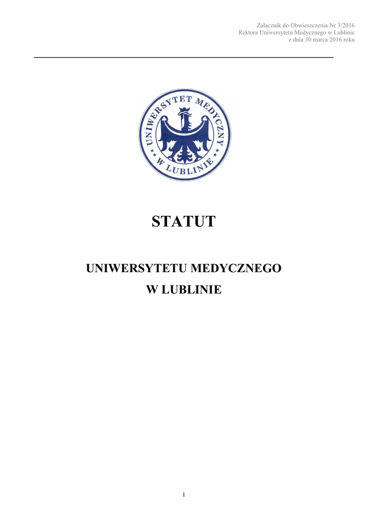 statut - BIP - Uniwersytet Medyczny w Lublinie