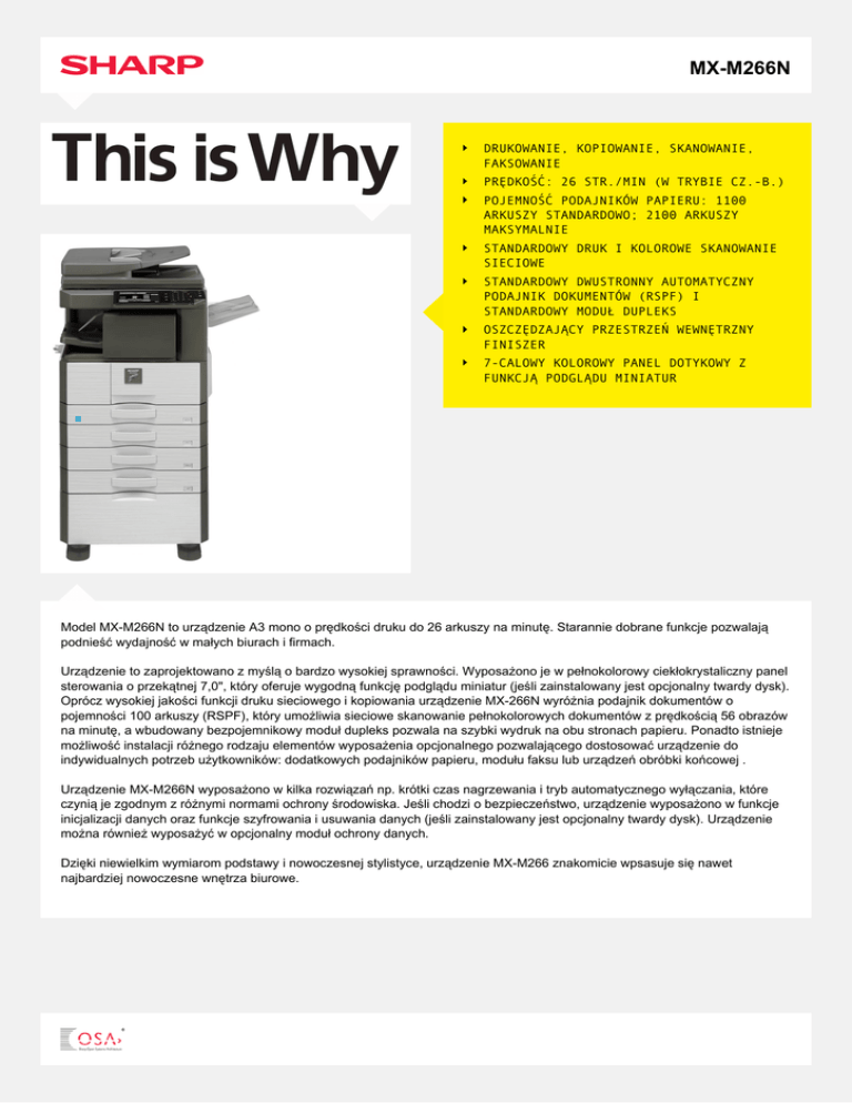 MX-M266N - MXM266N - Cyfrowe czarno-białe urządzenia