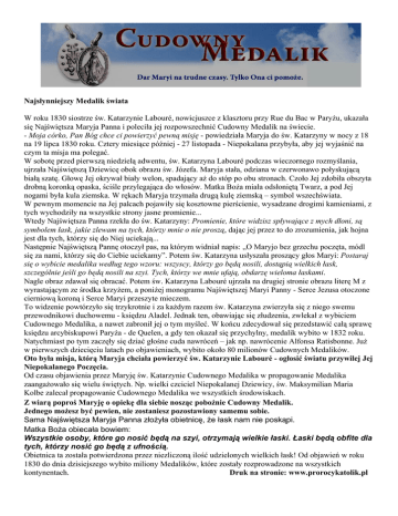 Najsłynniejszy Medalik świata W roku 1830 siostrze św. Katarzynie