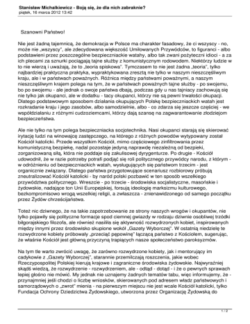Stanisław Michalkiewicz - Boją się, że dla nich zabraknie? piątek, 16 marca 2012 13:42 Szanowni Państwo! Nie jest żadną tajemnicą, że demokracja w Polsce ma charakter fasadowy, że ci wszyscy - no, może nie „wszyscy”, ale zdecydowana większość Umiłowanych Przywódców, to figuranci - albo podstawieni przez poszczególne bezpieczniackie watahy, albo tak zwani pożyteczni idioci - a za ich plecami za sznurki pociągają tajne służby z komunistycznym rodowodem. Niektórzy ludzie w to nie wierzą i uważają, że to „teoria spiskowa”. Tymczasem to nie jest żadna „teoria”, tylko najbardziej praktyczna praktyka, wypraktykowana zresztą nie tylko w naszym nieszczęśliwym kraju, ale i w państwach poważnych. Różnica między państwami poważnymi, a naszym nieszczęśliwym krajem polega na tym, że w państwach poważnych tajne służby - po swojemu, bo po swojemu - ale jednak o swoje państwa dbają, podczas gdy u nas tajniacy zachowują się nie tylko jak okupanci, ale w dodatku - tacy okupanci, którzy nie są pewni trwałości okupacji. Dlatego podstawowym sposobem działania okupujących Polskę bezpieczniackich watah jest rozkradanie kraju i jego zasobów, albo samodzielnie, albo - co zdarza się jeszcze częściej - we współdziałaniu z różnymi cudzoziemcami, którzy dają szansę na zagwarantowanie złodziejom bezpieczeństwa. Ale nie tylko na tym polega bezpieczniacka socjotechnika. Nasi okupanci starają się skierować irytację ludzi na winowajcę zastępczego, na którego z różnych powodów wytypowany został Kościół katolicki. Przede wszystkim Kościół, mimo częściowego zinfiltrowania przez komunistyczną bezpiekę, nadal pozostaje jedyną naprawdę niezależną od bezpieki, zorganizowaną siłą, która nie poddaje się zakulisowej dyrygenturze. Po drugie - Kościół udowodnił, że w razie potrzeby potrafi podjąć się roli politycznego przywódcy narodu, z którym w odróżnieniu od bezpieczniackich watah, wysługujących się państwom trzecim - jest organicznie związany. Dlatego państwa przygotowujące scenariusz rozbiorowy próbują zneutralizować Kościół katolicki - by naród polski pozbawić w ten sposób wszelkiego przywództwa politycznego. Wreszcie - po trzecie - środowiska socjalistyczne, masońskie i żydowskie, nadające ton Unii Europejskiej, forsują ideologię marksizmu kulturowego, bezkompromisowo wrogą wszelkiej religii, a zwłaszcza - znienawidzonego od samego początku przez Żydów chrześcijaństwa. Toteż nic dziwnego, że na takie zapotrzebowanie ze strony naszych wrogów i okupantów, nie tylko pojawiły się polityczne formacje spod ciemnej gwiazdy w rodzaju dziwnie osobliwej trzódki biłgorajskiego filozofa, ale również nasiliła się aktywność rozwydrzonych kobiet, inspirowanych między innymi przez środowisko skupione wokół „Gazety Wyborczej”. W ostatnią niedzielę te rozwydrzone kobiety próbowały „przeciąć pępowinę” łączącą państwo z Kościołem, sugerując, że właśnie Kościół jest główną przyczyną trapiących nasze społeczeństwo paroksyzmów. Na tym tle warto zwrócić uwagę, że zarówno rozwydrzone kobiety, jak i mentorujący im cadykowie z „Gazety Wyborczej”, starannie przemilczają roszczenia, jakie wobec Rzeczypospolitej Polskiej kierują krajowe i zagraniczne środowiska żydowskie. Najwyraźniej skądś wiedzą, że rozwydrzenie - rozwydrzeniem, ale - odtąd - dotąd - i że o pewnych sprawach lepiej głośno nie mówić. My jednak nie uznajemy żadnych tematów tabu, więc informujemy, że przynajmniej jeśli chodzi o liczbę wniosków, skierowanych pod adresem władz państwowych i samorządowych o „zwrot” mienia - na pierwszym miejscu nie jest wcale Kościół katolicki, tylko Fundacja Ochrony Dziedzictwa Żydowskiego, utworzona przez Organizację Żydowską do 1/2 Stanisław Michalkiewicz - Boją się, że dla nich zabraknie? piątek, 16 marca 2012 13:42 spraw Restytucji z siedzibą w Nowym Jorku oraz Związek Gmin Wyznaniowych Żydowskich. Do Komisji Regulacyjnej do spraw Gmin Wyznaniowych Żydowskich skierowała ona ponad 5 500 wniosków o przekazanie mienia, podczas gdy Kościół katolicki - zaledwie 3 tysiące. Dotychczas spośród tych 5 500 żydowskich wniosków rozpatrzono około 1800, a niezależnie od przekazania nieruchomości, wypłacono gminom żydowskim około 56 mln złotych odszkodowań. A przecież to kropla w morzu w porównaniu z żądaniami kierowanymi pod adresem Polski, by pod pretekstem restytucji mienia osób prywatnych, przekazała organizacjom wiadomego przemysłu majątek rzędu 60, czy nawet 65 miliardów dolarów. To są prawdziwe przygotowania do rabunku Polski i dopiero na tym tle można zrozumieć perfidię środowiska „Gazety Wyborczej”, szczującego rozwydrzone kobiety na Kościół katolicki. Felieton • Radio Maryja • 15 marca 2012 Mówił Stanisław Michalkiewicz za: http://www.michalkiewicz.pl/tekst.php?tekst=2438 (kn) 2/2