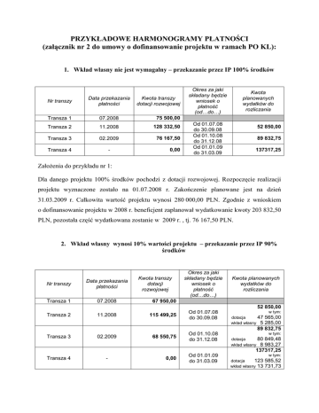PRZYKŁADOWE HARMONOGRAMY PŁATNOŚCI (załącznik nr 2