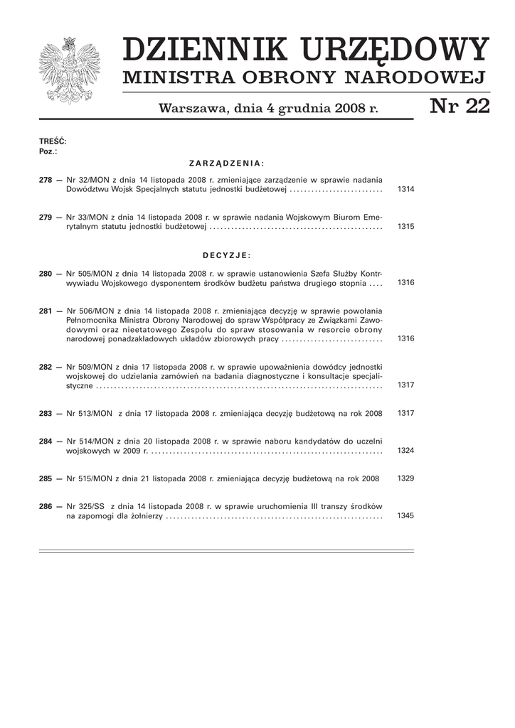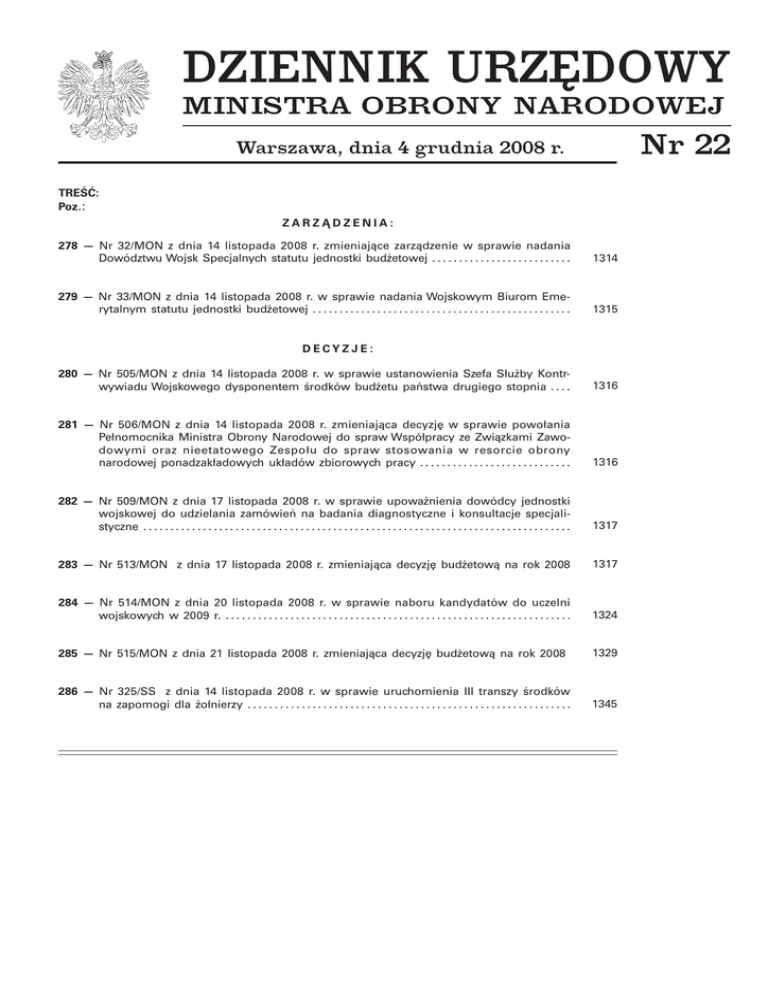 Dz.Urz. MON nr 22 z dn. 04.12.2008 r.