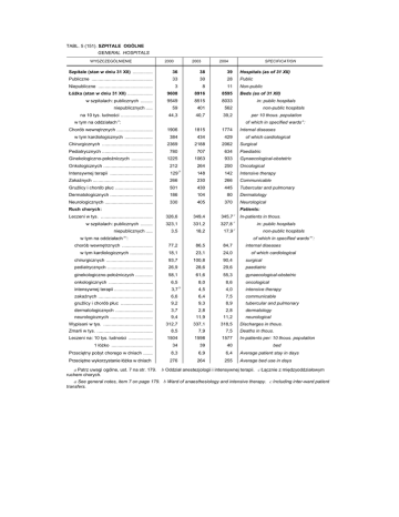 TABL. 5 (151). SZPITALE OGÓLNE GENERAL HOSPITALS Szpitale