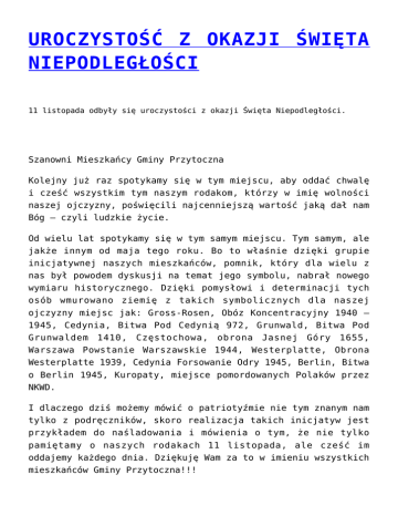 UROCZYSTOŚĆ Z OKAZJI ŚWIĘTA NIEPODLEGŁOŚCI