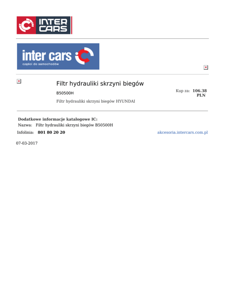 Filtr hydrauliki skrzyni biegów B50500H Kup za: 106.38 PLN Filtr hydrauliki skrzyni biegów HYUNDAI Dodatkowe informacje katalogowe IC: Nazwa: Filtr hydrauliki skrzyni biegów B50500H Infolinia: 801 80 20 20 07-03-2017 akcesoria.intercars.com.pl