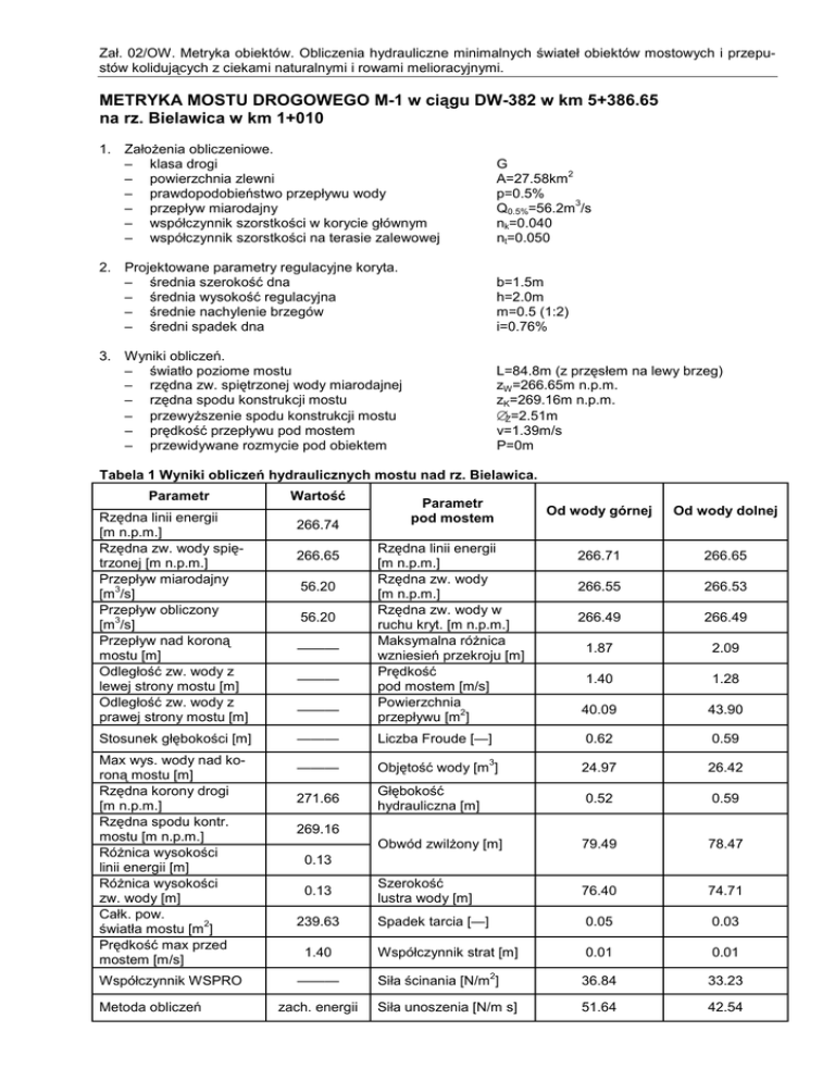 METRYKA MOSTU DROGOWEGO M-1 w ciągu DW