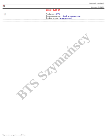 Informacje o produkcie Utworzono 07-03-2017 Cena : 0,00 zł B TS Sz ym ań sc y Producent : GTV Stan magazynowy : brak w magazynie Średnia ocena : brak recenzji Wygenerowano w programie www.oscGold.com