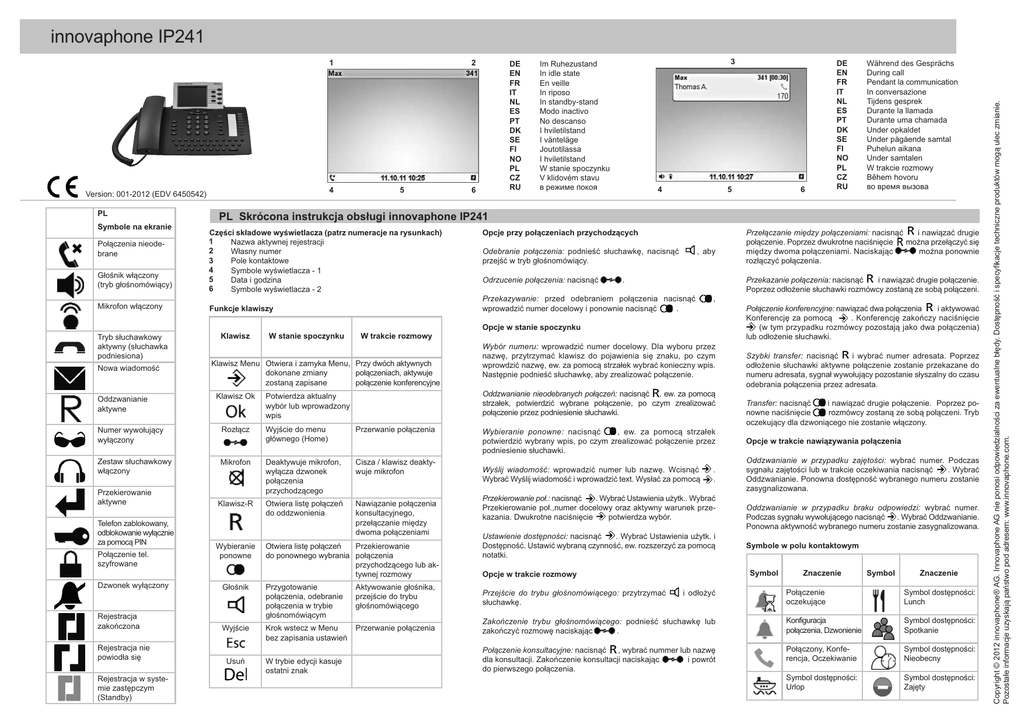Skrócona instrukcja obsługi innovaphone IP241