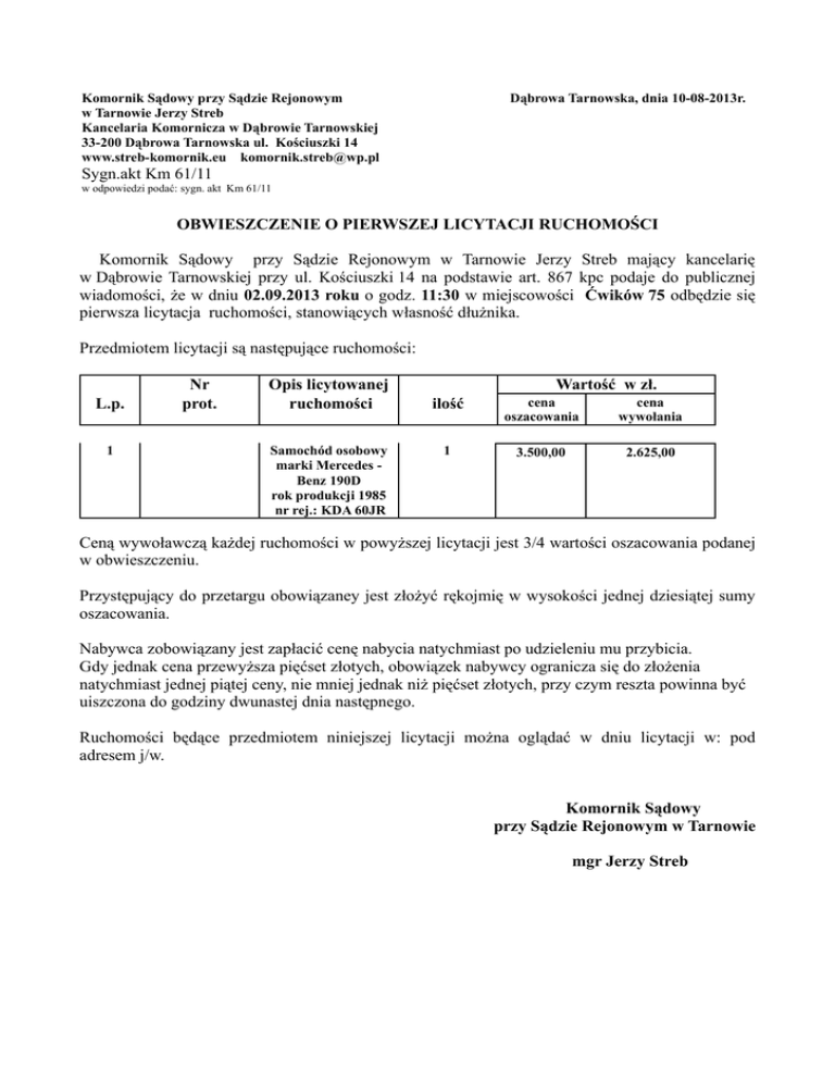 Pobierz załącznik - Komornik Dąbrowa Tarnowska