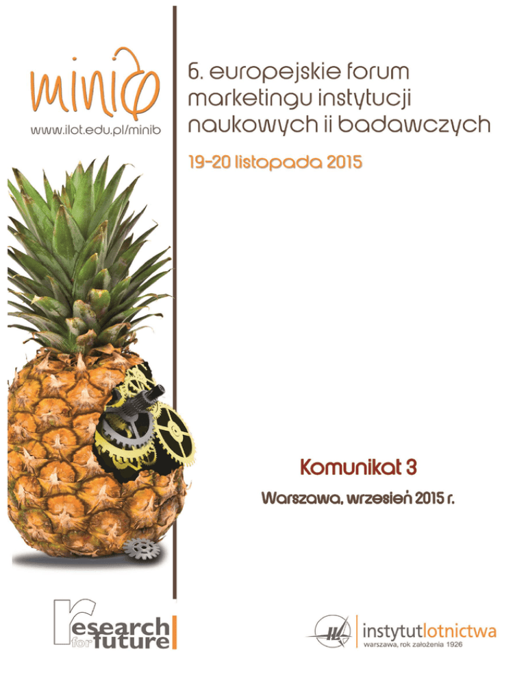 ORGANIZATOR Instytut Lotnictwa w Warszawie PATRONAT HONOROWY Minister Nauki i Szkolnictwa Wyższego Wicepremiera, Ministra Gospodarki RADA PROGRAMOWA Przewodniczący: prof. dr hab. Bogdan Sojkin, Uniwersytet Ekonomiczny w Poznaniu, Polska Członkowie: prof. George J. Avlonitis, Uniwersytet Ekonomii i Biznesu w Atenach, Grecja prof. nadzw. dr hab. Agnieszka Izabela Baruk, Politechnika Łódzka, Polska prof. dr hab. Lidia Białoń, Wyższa Szkoła Menedżerska w Warszawie, Polska prof. Hakan Hakansson, Norwegian Business School w Oslo, Norwegia dr Zoran Krupka, Uniwersytet Zagrzebski, Chorwacja prof. dr Durdana Ozretic-Dosen, Uniwersytet Zagrzebski, Chorwacja dr Paulina Papastathopoulou, Uniwersytet Ekonomii i Biznesu w Atenach, Grecja prof. dr hab. Mirosława Pluta-Olearnik, Uniwersytet Ekonomiczny we Wrocławiu, Polska DATA FORUM 19-20 listopada 2015 roku MIEJSCE KONFERENCJI Instytut Lotnictwa al. Krakowska 110/114 02-256 Warszawa, Polska Instytut Lotnictwa, al. Krakowska 110/114, 02-256 Warszawa e-mail: [email protected] www.ilot.edu.pl/minib O FORUM W dniach 19-20 listopada 2015 roku Instytut Lotnictwa organizuje 6. Europejskie Forum Marketingu Instytucji Naukowych i Badawczych. Tegoroczne forum będzie ponownie okazją do podjęcia dyskusji i wymiany poglądów w dziedzinie marketingu instytucji naukowych i badawczych. Jest to wyjątkowe wydarzenie w ramach, którego pracownicy działów marketingu instytutów badawczych, uczelni wyższych, przedsiębiorstw zainteresowani poszerzeniem wiedzy i rozwojem kompetencji mają okazję spotkać się z wybitnymi autorytetami, czołowymi naukowcami oraz praktykami w dziedzinie marketingu z całej Europy. Wśród prelegentów znajdą się zarówno profesorowie i wykładowcy akademiccy, jak również pracownicy instytucji badawczych i naukowych. Celem Forum jest prezentacja najnowszych wyników badań oraz rozwiązań praktycznych stosowanych przez instytucje naukowe i badawcze, m.in. instytuty, uczelnie, parki technologiczne z całej Europy. Głównym przedmiotem zainteresowania Forum będą strategie marketingowe wspierające promocję specyficznych usług oferowanych przez instytucje naukowe i badawcze w Polsce oraz innych krajach europejskich. Poruszone zostaną tematy związane m.in. z badaniami i analizami marketingowymi, marketingiem B2B, public relations, social marketingiem, komercjalizacją wyników badań, prawem autorskim. Wydarzenie to stwarza nie tylko możliwość poznania aktualnych trendów, nowych narzędzi, strategii w marketingu instytucji naukowych i badawczych, ale stanowi okazję do wymiany poglądów i nawiązania nowych kontaktów. Europejskie Forum Marketingu Instytucji Naukowych i Badawczych dzięki swojej innowacyjnej formule a zarazem wyjątkowości merytorycznej wpisało się na stałe do kalendarza konferencji o tematyce marketingowej. Program 6. Europejskie Forum Marketingu Instytucji Naukowych i Badawczych I dzień 8:30 - 9:00 Rejestracja uczestników/ Powitalna kawa 9:00 - 9:30 Przemówienia powitalne "Marketing wysokich technologii - wyzwania transferu technologii z laboratorium na rynek" 9:30 – 11:00 Keynote Speaker - prof. William Bradley „Brad” Zehner II, Uniwersytet św. Edwarda, Stany Zjednoczone 11:00 – 11:10 Przerwa kawowa Sesja 1 Uniwersytety jako instytucje naukowe i badawcze Prowadzący: prof. dr hab. Bogdan Sojkin 11:10 - 11:55 Wyzwania dla marketingu instytucji naukowych i badawczych, prof. dr hab. Bogdan Sojkin, Uniwersytet Ekonomiczny w Poznaniu, Polska OId Time Religion Marketing jako sprawa przeszłości, Crentsil Kofi Agyekum, Politechnika Pekińska, Chiny Rola marketingu szkoły wyższej w kształtowaniu świadomości innowacyjności, prof. dr hab. Lidia Białoń, Wyższa Szkoła Menedżerska w Warszawie, Polska Instytut Lotnictwa, al. Krakowska 110/114, 02-256 Warszawa e-mail: [email protected] www.ilot.edu.pl/minib 11:55 – 12:45 Lunch Sesja 2 Strategie komunikacji w instytucjach naukowych i badawczych Prowadząca: prof. dr hab. Mirosława Pluta-Olearnik 12:45 - 13:45 13:45-14:00 14:00-15:00 15:05-16:05 Umiędzynarodowienie marketingu w sektorze edukacji i badań, prof. dr hab. Mirosława Pluta-Olearnik, Uniwersytet Ekonomiczny we Wrocławiu, Polska Brand Alliance jako element strategii marketingowej organizacji naukowej, prof. dr Jörn Redler, Corporate State University Baden-Wüerttemberg, Niemcy Efektywna komunikacja z mediami, Jadranka Jezersek Turnes, Director, Kontekst, Ljubljana, Słowenia Employer Branding w instytucjach naukowych i badawczych – wewnętrzna komunikacja międzypokoleniowa, Anna Dzienio, Dzienio PR Custom Made, Warszawa, Polska Przerwa kawowa Warsztaty równoległe Kreowanie wizerunku naukowca – Prowadzący niespodzianka Storytelling w marketingu nauki – Grzegorz Kosson, pisarz i strateg Internet w komunikacji naukowej – Bartłomiej Juszczyk, Dyrektor Zarządzający Agencji Marketingu Zintegrowanego Grupa Adweb Komercjalizacja wyników badań – dr hab. Dariusz Trzmielak, Dyrektor Centrum Transferu Technologii Uniwersytetu Łódzkiego Każdy z uczestników Forum może uczestniczyć w 2 warsztatach. Prosimy o wybranie dwóch warsztatów podczas procesu rejestracji w formularzu rejestracyjnym. Liczy się kolejność zgłoszeń. 19:00 Spektakl „Utalentowany pan Ripley” w Teatrze Studio im. S. I. Witkiewicza oraz bankiet po spektaklu II dzień 8:50-9:00 Powitalna kawa Sesja 3 B2B marketing w organizacjach naukowych Prowadząca: prof. dr Durdana Ozretic-Dosen 9:00 - 10:15 Branding krajowy jako źródło przewagi konkurencyjnej - rola i znaczenie organizacji naukowych i badawczych w brandingu krajowym, prof. dr Durdana Ozretic-Dosen, Uniwersytet Zagrzebski, Chorwacja Kształtowanie wizerunku marki instytucji naukowej z wykorzystaniem instrumentów online, dr Barbara Mróz-Gorgoń, mgr Aleksandra Całka, Uniwersytet Ekonomiczny we Wrocławiu, Polska Model biznesowy w działalności badawczo-rozwojowej, dr inż. Jerzy Koszałka, Politechnika Gdańska, Pols