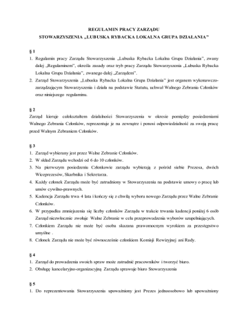 REGULAMIN PRACY ZARZĄDU STOWARZYSZENIA „LUBUSKA