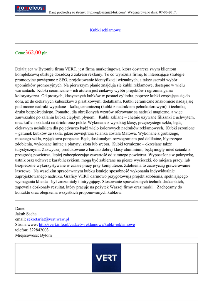 Kubki reklamowe - ogloszenia w uk