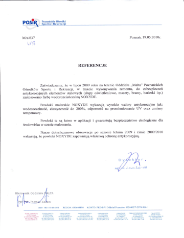 Zaśwtadczamy, Żę w lipcu 2009 roku na terenie oddziału ,,Malta'' Poznańskich