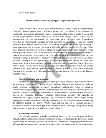 ks. Mariusz Rosik Rembrandt ułaskawiony czyli głos w sprawie