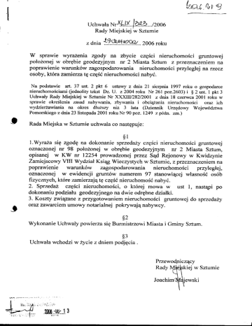 UchwalyRadyMiejskiejw SztumieNr XXXII/282 /2001 z dnia 18 czerwca2001roku w