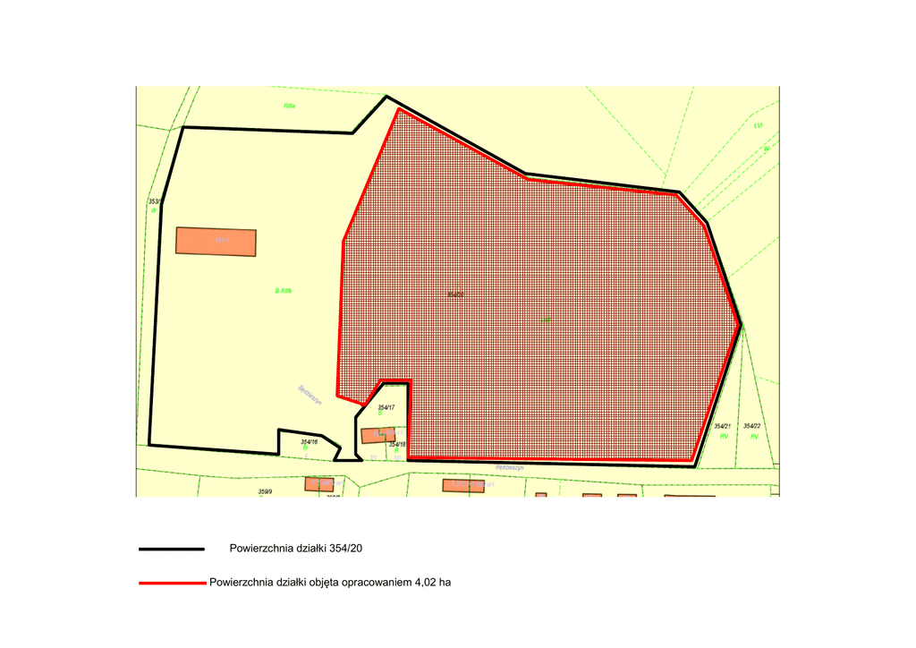 Powierzchnia działki 354/20 Powierzchnia działki objęta opracowaniem 4,02 ha