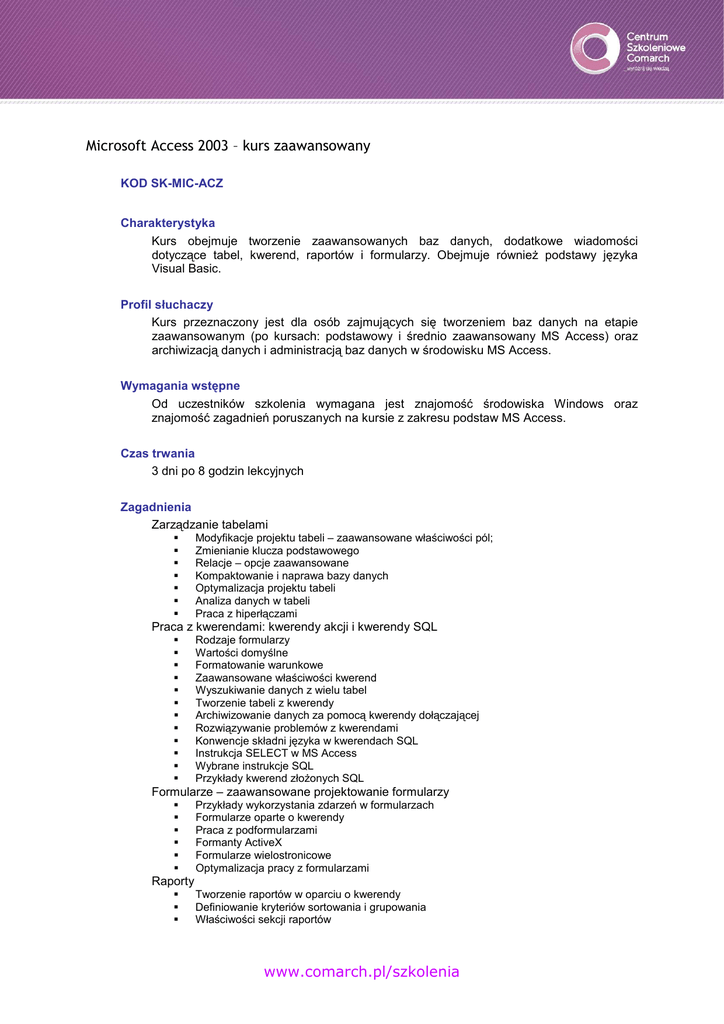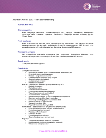 www.comarch.pl/szkolenia Microsoft Access – kurs zaawansowany