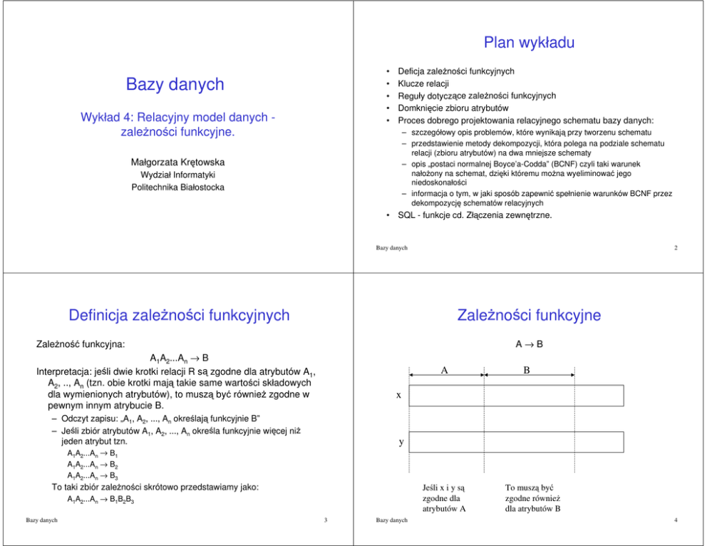 Wykáad 4: Relacyjny model danych zale*noci funkcyjne.