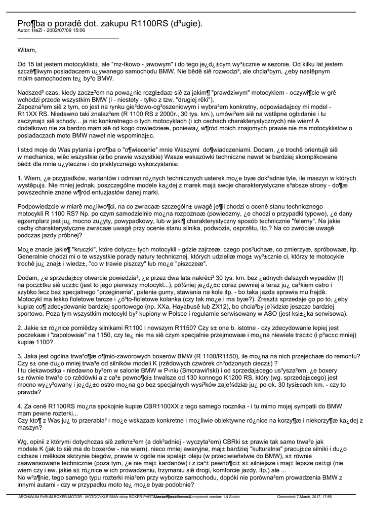 Pro¶ba o poradę dot. zakupu R1100RS (d³ugie). - Boxer