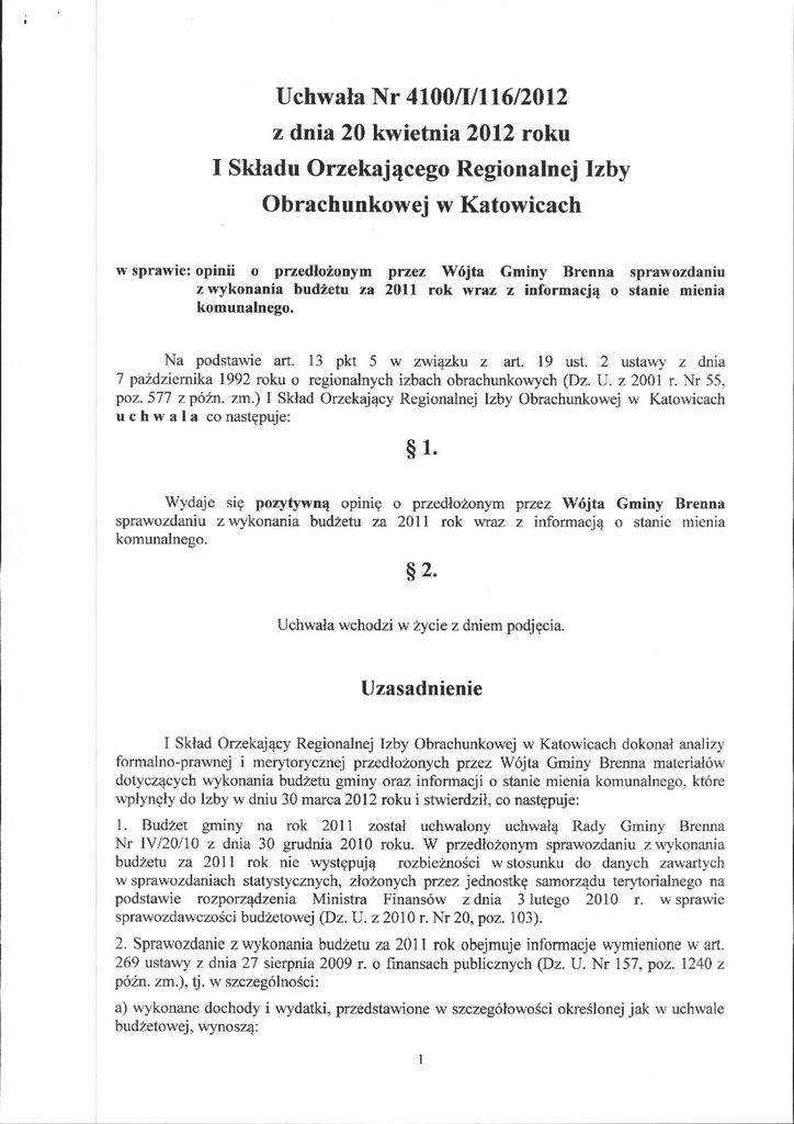 I Sklad Orzekaj4cy Regionalnej Izby Obrachunkowej w Katowicach dokonal analizy
