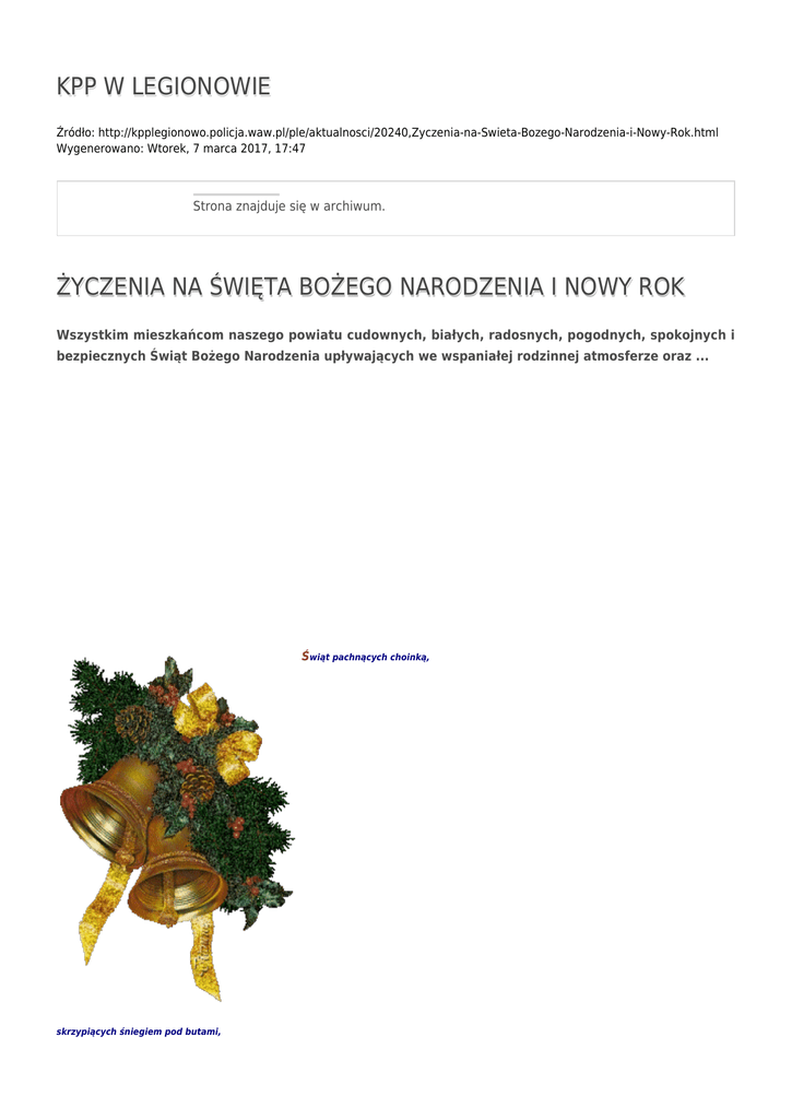 KPP W LEGIONOWIE ŻYCZENIA NA ŚWIĘTA BOŻEGO
